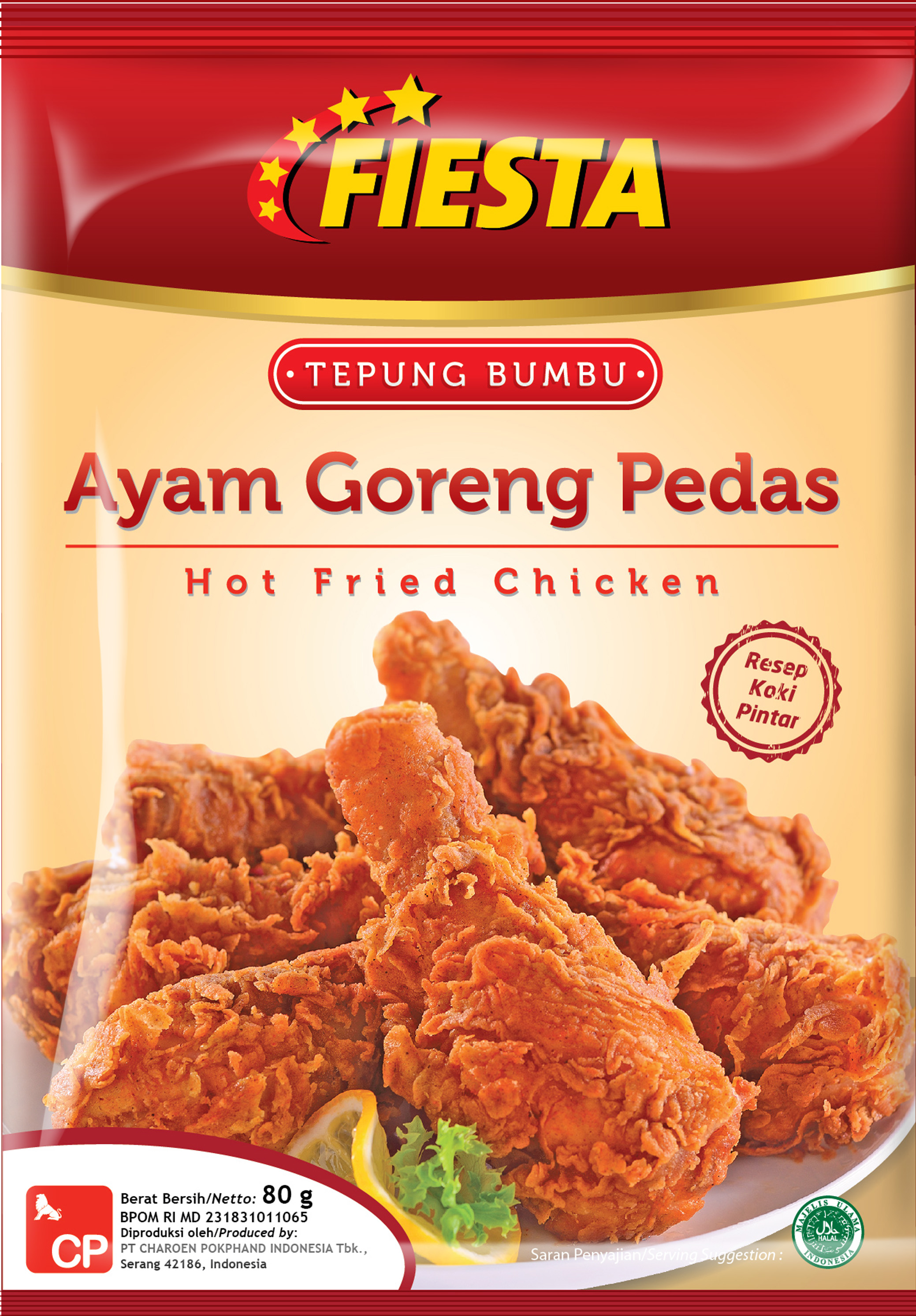 Fiesta Tepung Bumbu Ayam Goreng Pedas terbuat dengan perpaduan rempah asli, sehingga memiliki rasa dan aroma yang membuat setiap masakan menjadi lebih praktis, mudah, dan lezat selezat masakan koki. Tersedia dalam ukuran 80gr.