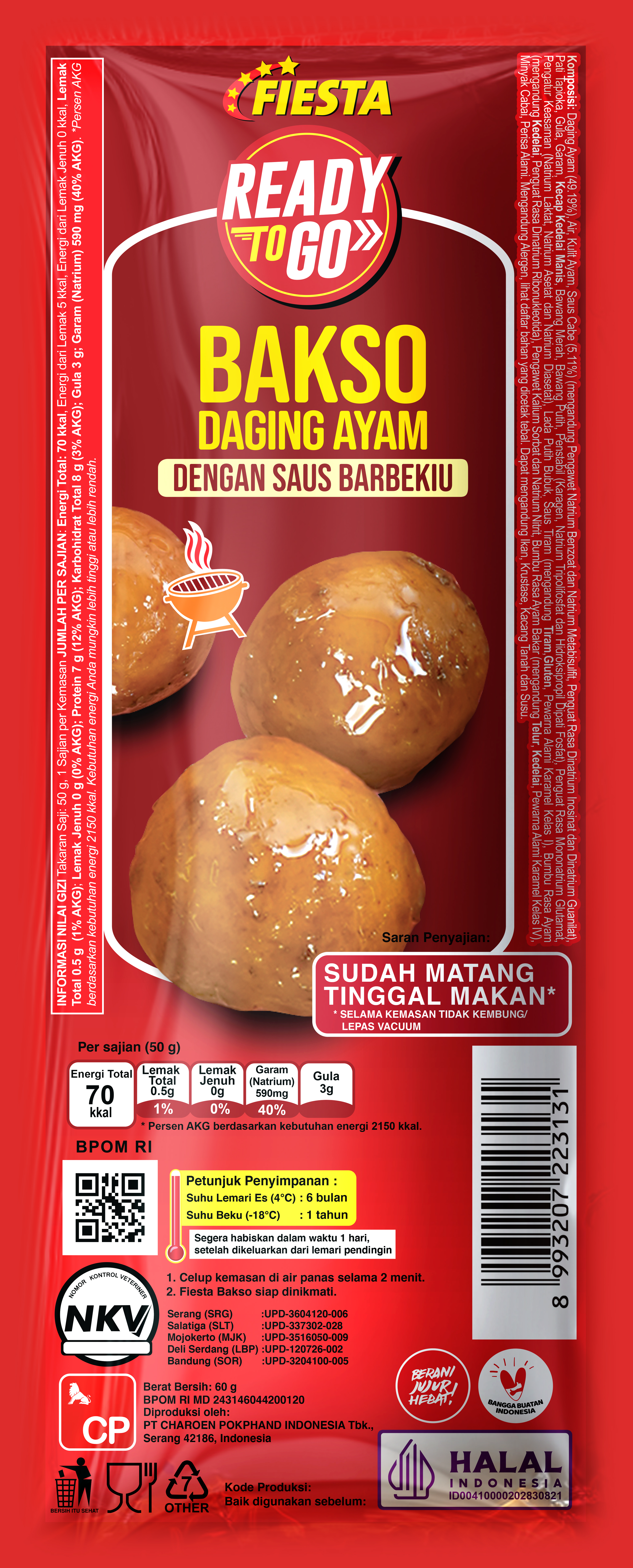 Bakso siap santap dari daging ayam pilihan, dilengkapi saus barbekiu dengan cita rasa manis dan pedas yang menggugah selera.