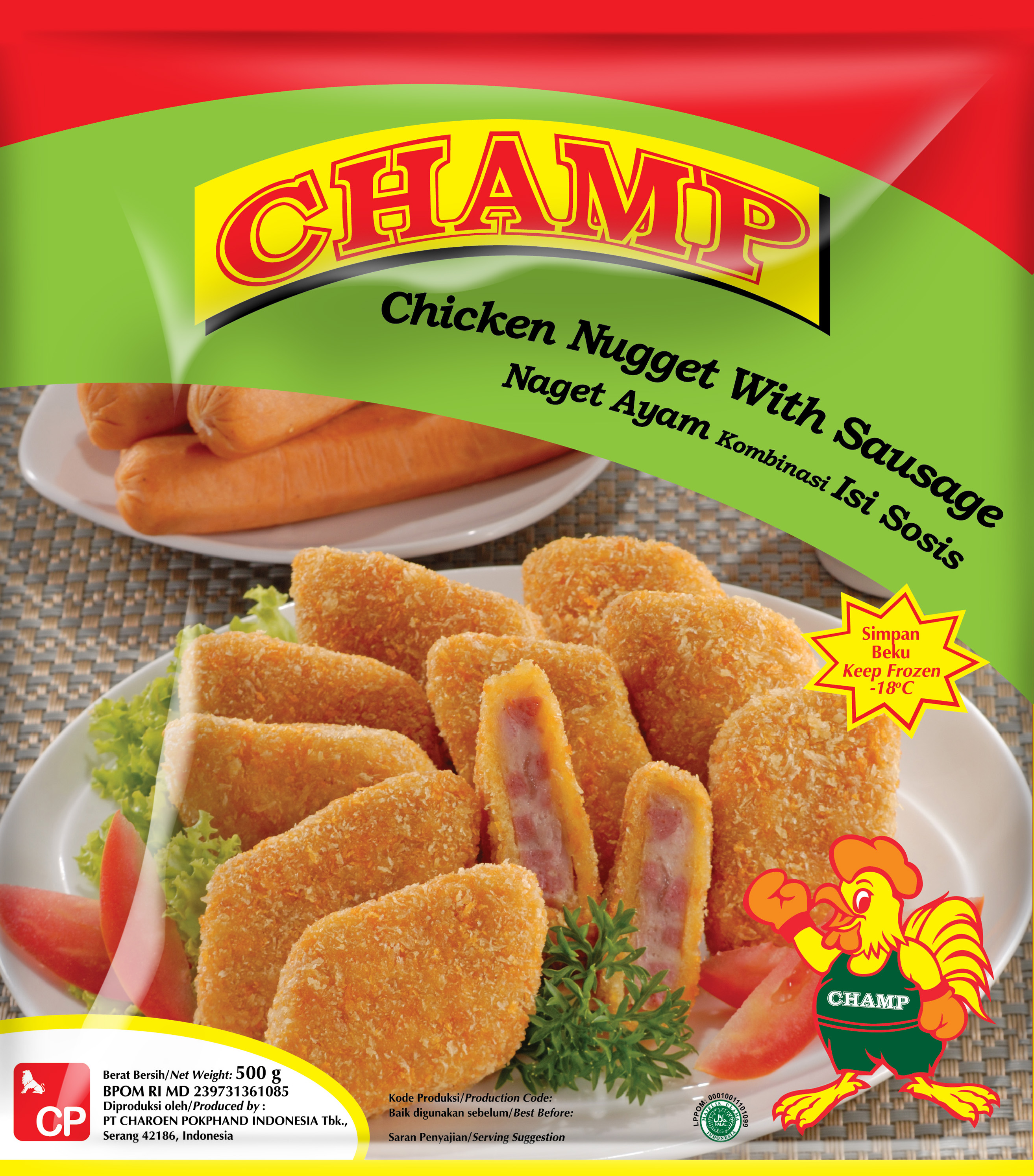 Rasa Naget Ayam yang gurih memadukan kelembutan daging ayam dan rasa gurih Sosis dengan kelezatan pilihan. Bentuk Belah Ketupat yang unik dan berisi sosis di dalamnya. Tersedia dalam ukuran 500gr.