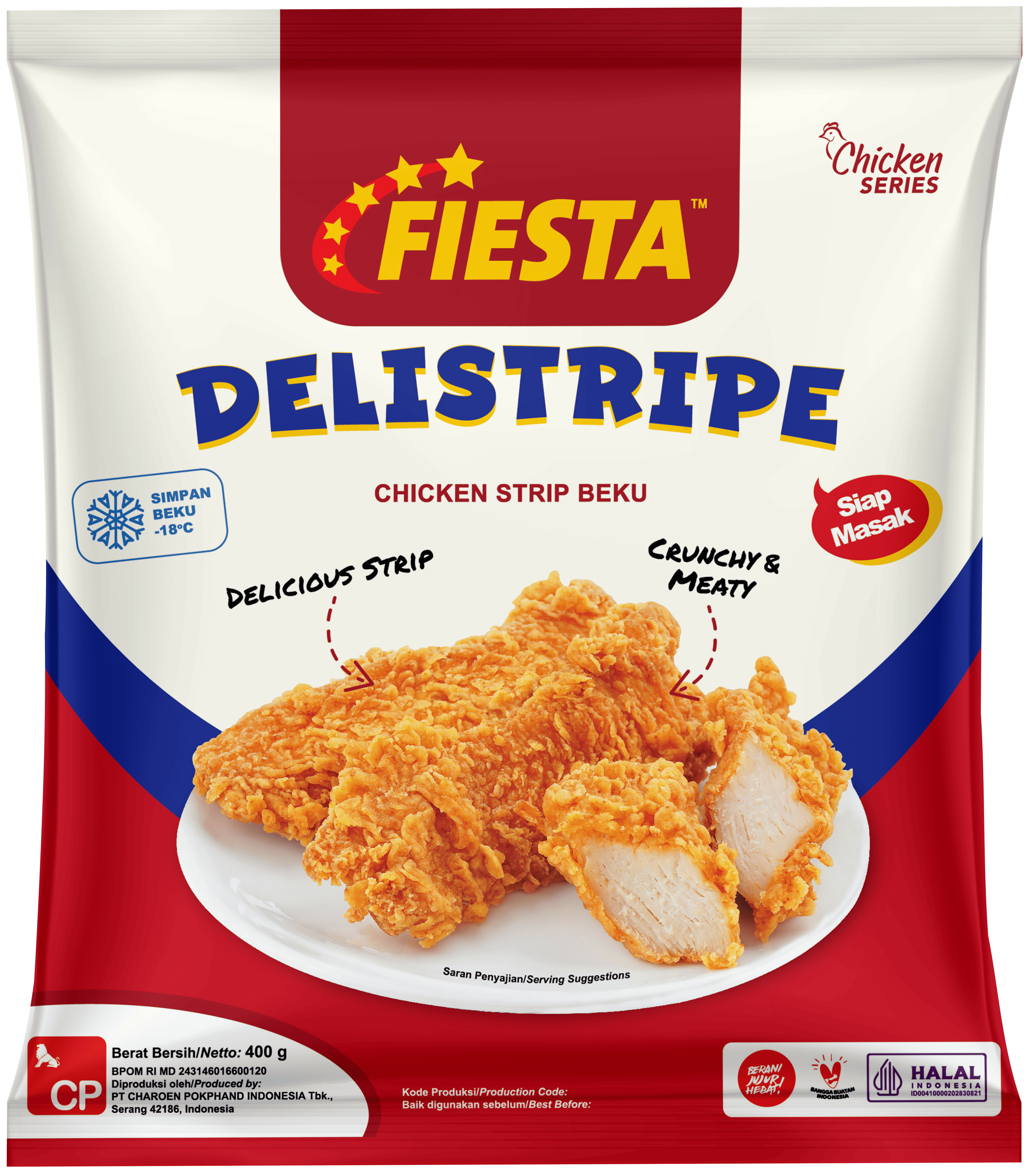 Terbuat dari daging paha ayam berbentuk strip dengan tepung yang renyah di luarnya. Terasa lembut dan juicy di bagian dalam serta crispy dan gurih di luarnya. Tersedia dalam ukuran 500gr.