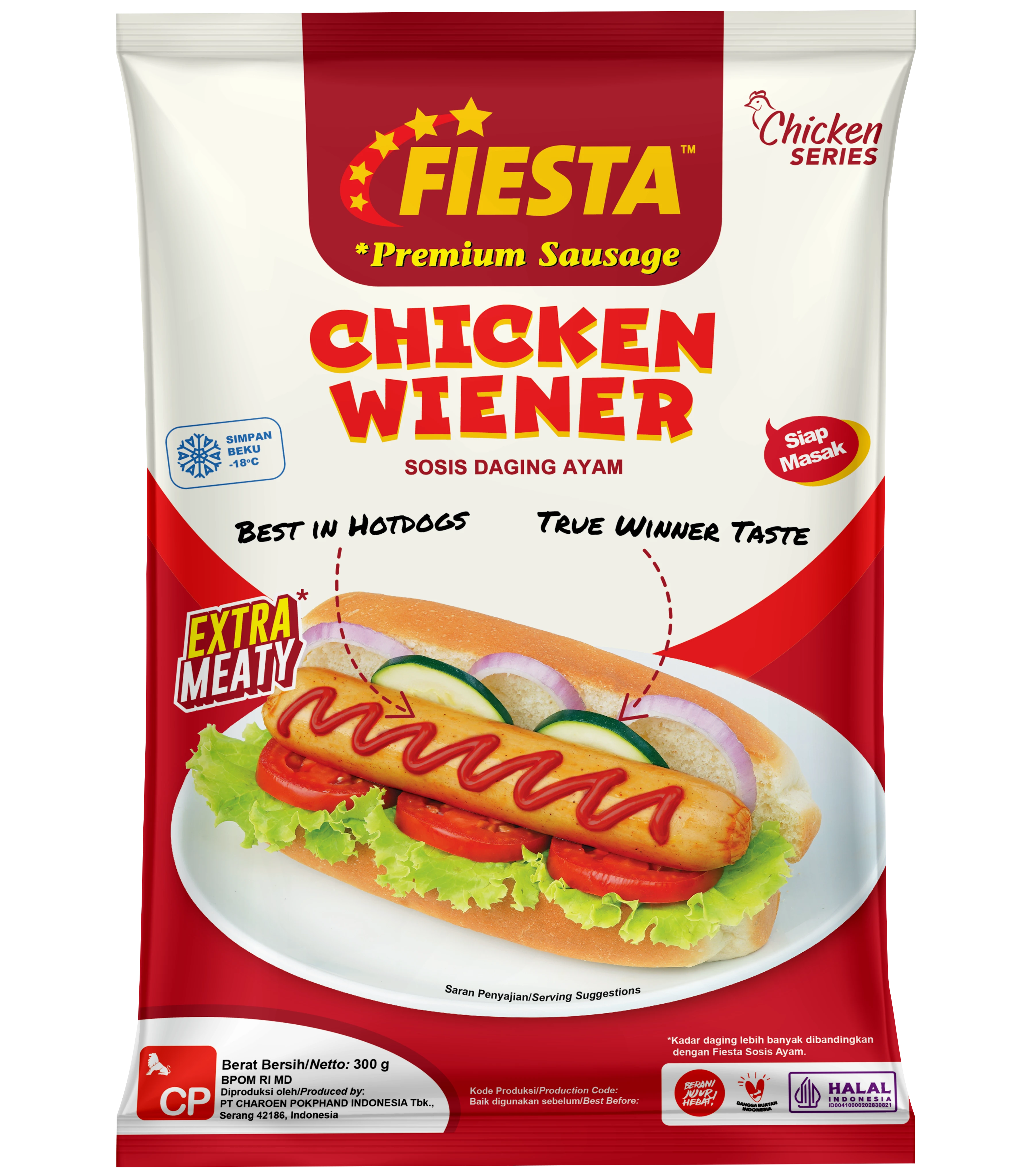 Fiesta Chicken Wiener Sausage terbuat dari daging ayam segar yang diolah berkualitas tinggi. Tersedia dalam ukuran 300gr.