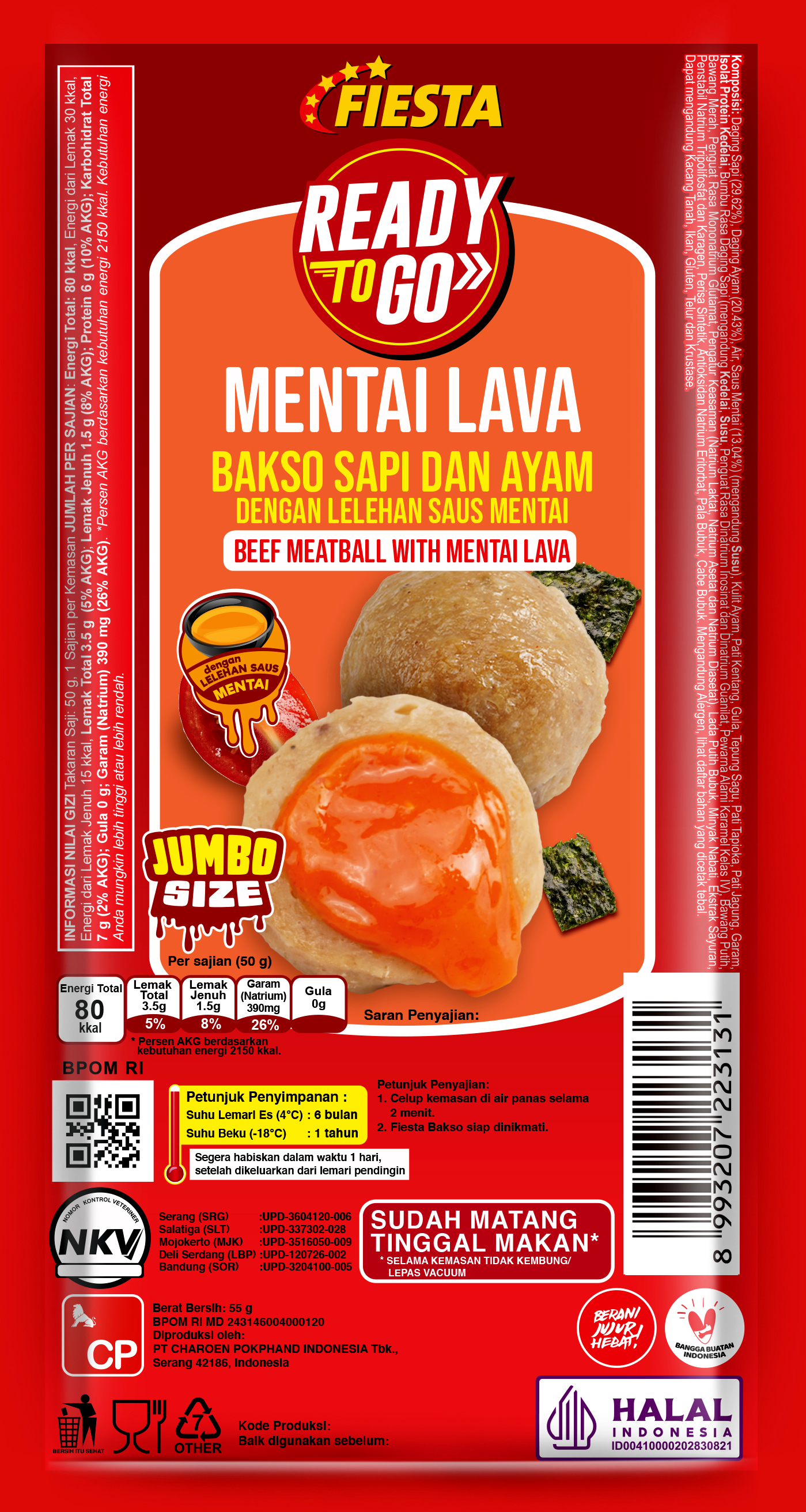 Bakso jumbo siap santap dari ayam pilihan dengan sensasi ledakan rasa umami mentai saat digigit.