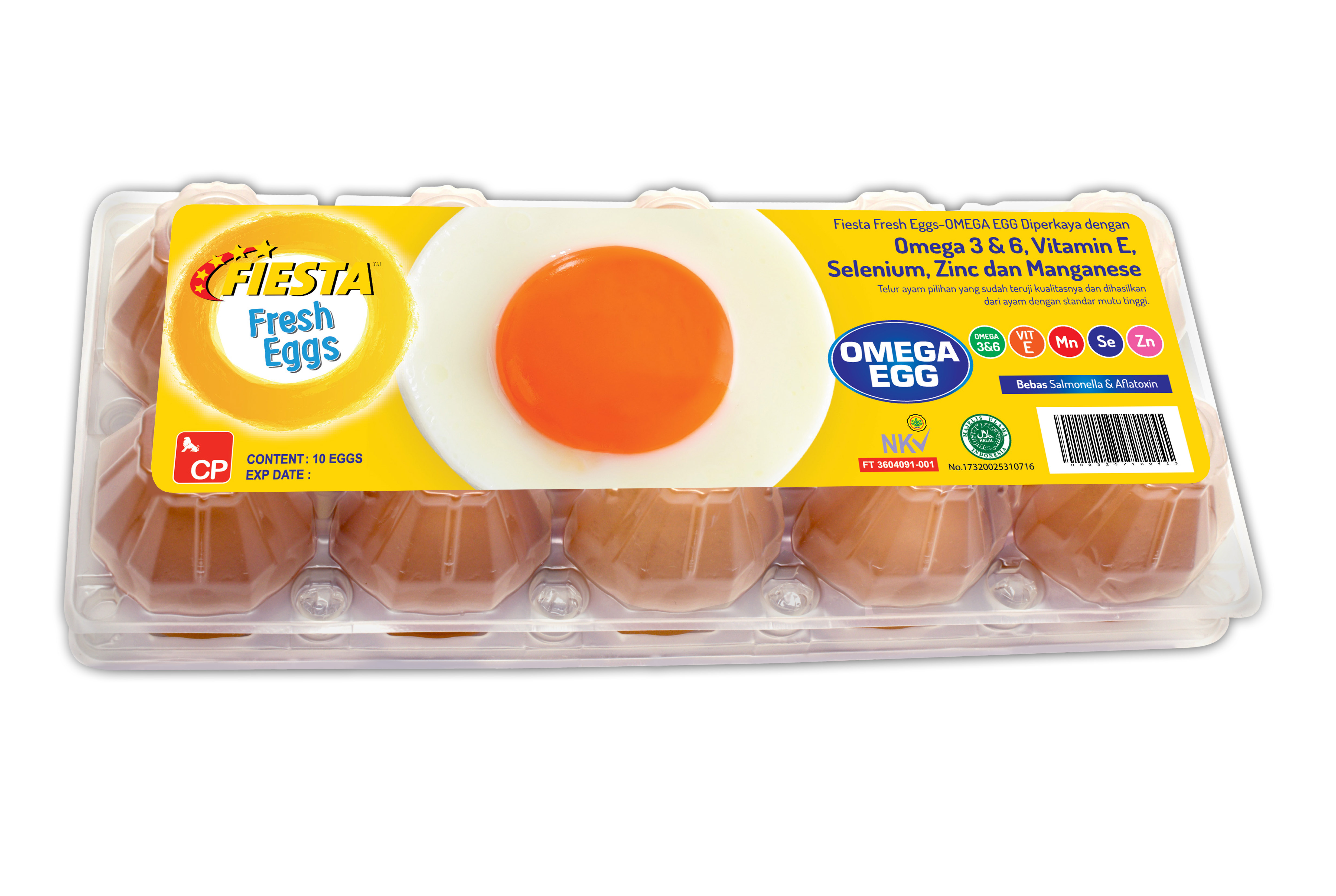 Fiesta Fresh Egg Omega diperkaya dengan Omega 3 & 6, Vit. E, Selenium, Zinc, dan Manganese yang membantu memperkuat daya tahan tubuh sehingga membuat anak lebih sehat, aktif , dan enerjik. Fiesta Fresh Eggs Omega dihasilkan dari ayam dengan standar mutu tinggi yang teruji kualitasnya dan memiliki kelebihan dibanding telur ayam biasa. Tersedia isi 10pcs.