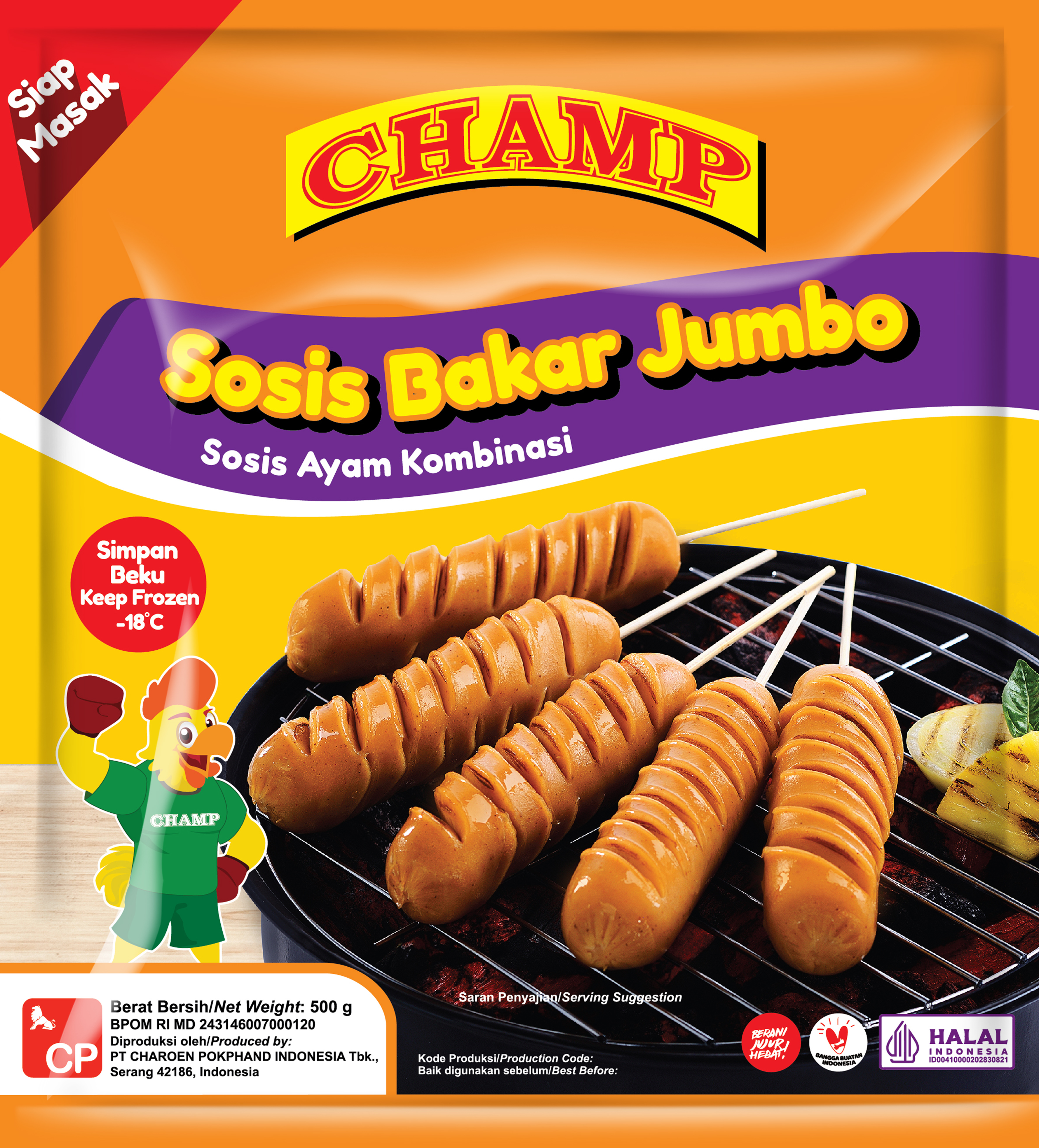 Champ Sosis Ayam Jumbo isi 6 pcs terbuat dari daging Ayam olahan berkualitas tinggi yang diolah dengan bumbu pilihan yang membuat cita rasanya menjadi lebih lezat. Dapat diolah menjadi hidangan apapun, baik dibakar ataupun digoreng. Tersedia dalam ukuran 500gr.