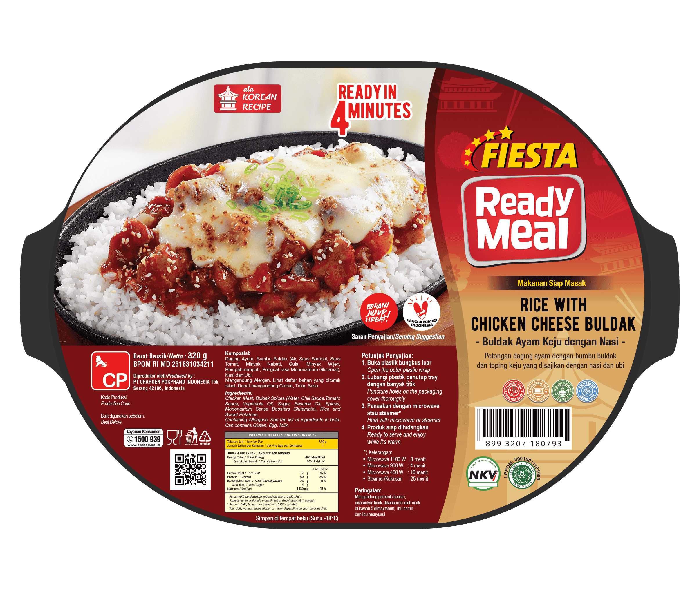 Penuhi kebutuhan nutrisimu dengan Fiesta Ready Meal Rice With Chicken Cheese Buldak. Tersedia ukuran 320gr.