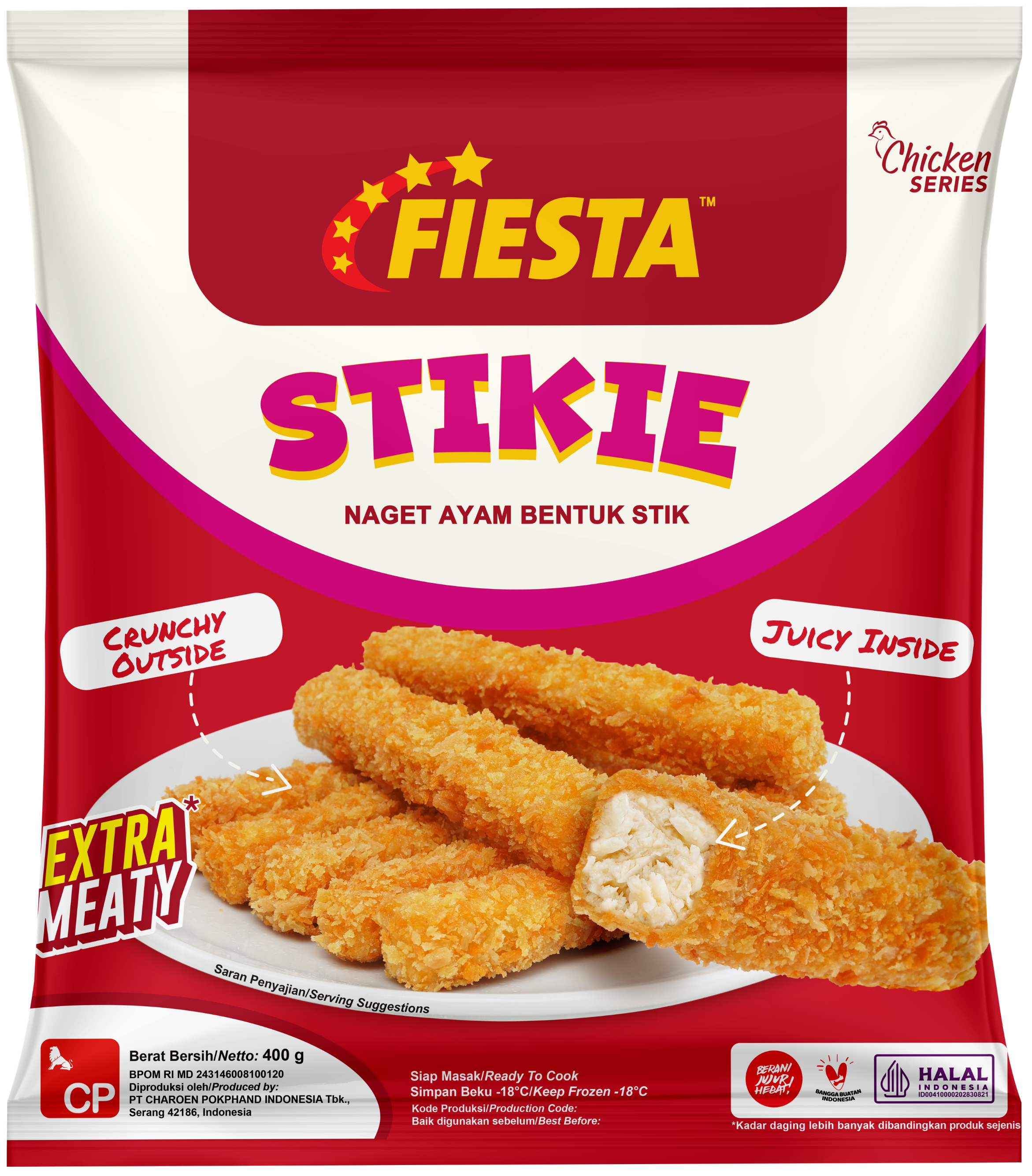 Naget ayam bentuk stik. Tersedia dalam ukuran 200gr & 400gr.