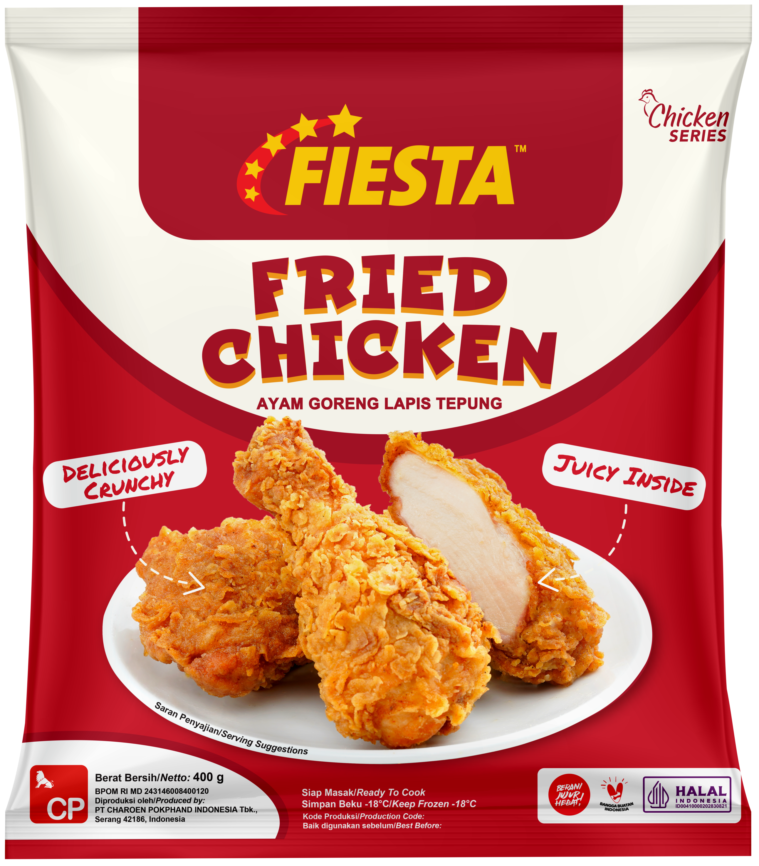 Panaskan minyak goreng kurang lebih 5 menit lalu masukkan Fiesta Fried Chicken goreng hingga berwarna Golden brown dan renyah.